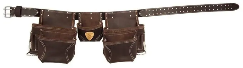 While others look and reach for tools—for me, choosing the right tool belt means access. I want my tools right on me in my tool belt at all times. This carpenters tool belt has some of the best stitching we’ve seen. The protective double-stitched leather lining around the rim of the pockets makes the AWP HP General Construction Leather Belt Flip Pocket Tool Rig second to few.