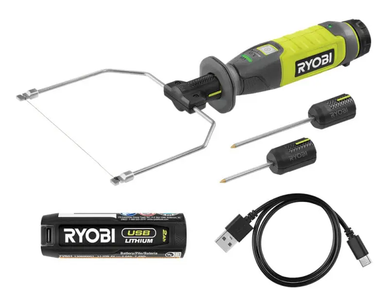 This tool retails for $99 for the kit, including a nichrome wire, several tips, a USB Lithium 2.0Ah battery, and a USB-C charging cable. All of the components are packaged in the included hard carrying case to keep everything organized. Ryobi backs your purchase with a 2-year warranty.