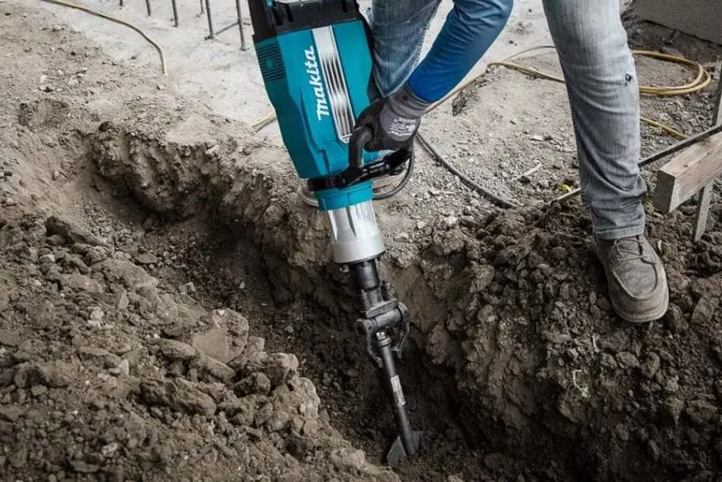 The Makita HM1502 43 lb. demolition hammer lacks AVT vibration control, but hits with all the power of the larger HM1512. Makita designed this demolition hammer to blast through lower wall zones and floor foundations up to 8-inches thick. Makita also engineered it specifically to tackle trench digging and even tamping applications.